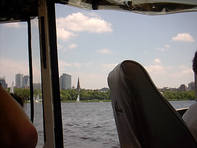 Our "ConDUCKtor", "Officer D. Dunkin", a retired Boston PD police officer, who did a great job driving, boating, narrating the tour with many historic antidotes. Riding through the channel by the Museum of Science.