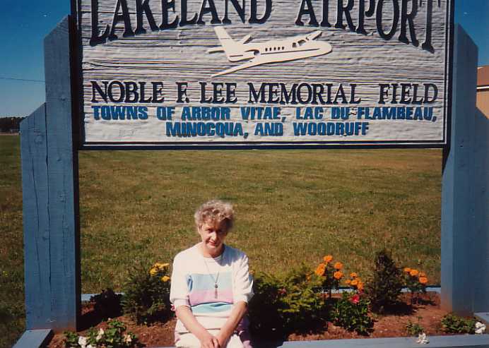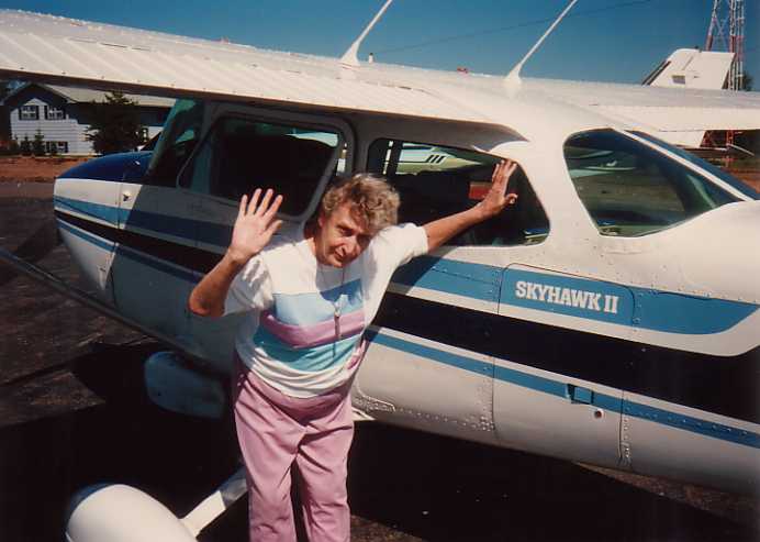 Joyce to Woodruff and Minocqua August 28, 1990 Joyce's first airplane ride, Merrill to Minocqua-Woodruff on August 28, 1990. Ma posing with Cessna 172 (N4899G) proving survival of her one and only lifetime flight. Made a very shallow banking turns in the pattern, but still I detected some anxiety while turning base to final approach.. Char and Dolly picked us at the Lakeland Airport. Then to their place at the "Pointe" with a Mc Donald's Drive-thru stop first. Back To Misc. Av Photos 5 Back To Misc. Av Photos Next To Misc. Av Photos 7 |