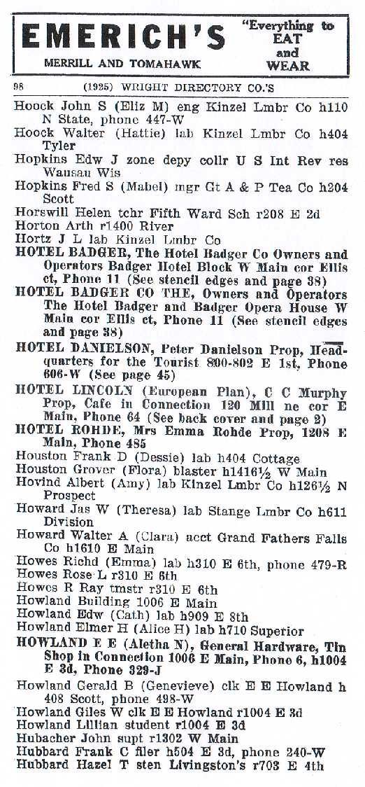 Merrill City Directory 1925