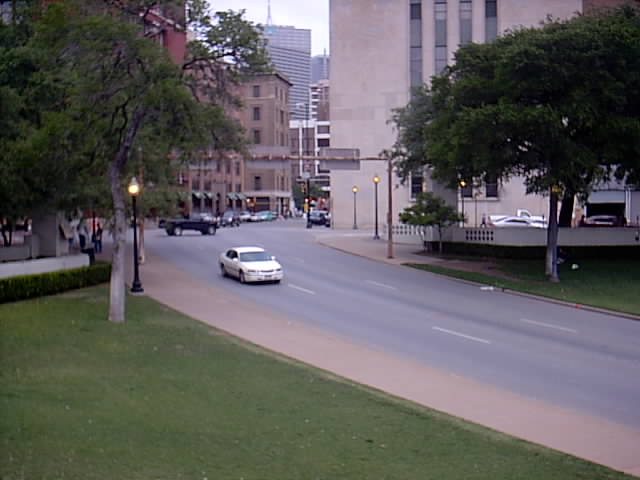 I'm standing on the road where Kennedy was struck with the first shot looking at the 6th floor Snipers Den. I'm standing on the road where Kennedy was struck with the fatal shot looking at the 6th floor Snipers Den. I am standing on the concrete pedestal exactly where Abraham Zupruter was, when he was filming the assassination of JFK. I am looking at the exact location where the fatal shot struck Kennedy. GPS Coordinates from here are: N32:46:750 W096:48.532 taken May 12, 2005 at 2:50 P.M.. I am still standing on the concrete pedestal looking at the white car that approaching the location where Kennedy was stuck with the first bullet. This picture was taken on the ground right in front of the concrete pedistal. Some claim a stray bullet struck and made a mark this over pass concrete. Note the train above. When I leave Dallas, my Amtrak train stopped in the same location providing me another view of a Daeley Plaza perspective. Looking back at the location where Kennedy took the first bullet. Looking up Reunion Tower is truly a Dallas landmark about 50 stories in height and is part of the Hyatt Regency Hotel complex at Reunion Tower. I looked for that bullet mark, but could not see anything obvious. Walking back, checking out the grassy knoll area. Other tourist checking out behind the Zapruter pedestal location. The green painted area on the fence is the location where many people believe the fatal shot was fired from, including me. The green painted area on the fence is the location where many people believe the fatal shot was fired from, including me. I am at this fence location and the red car is exactly where Kennedy was hit with the fatal shot. Watch the Zupruter film several times, paying attention to the shot impact and head movement of JFK. Note the velocity and movement impact of JFK's head. Common sense and simple physics can not make you believe that the fatal shot came from the 6th floor. The Discovery Channel program claims the head would move backward if struck from behind, since their water melon experiment that was struck from behind splattered backward. They offered this lame experimentation as proof. First, the water melon was not attached to a neck and body. Second the structure and mass is completely different than a human living skull. Third, the balance of the melon has a lot to do with what direction it will move when struck. Visit this location and watch the Zapruter film, It will make a believer out of you. Also, there were photos and witnesses seeing a man with a rifle in this area. These facts can not be disputed by anyone. I went to the over pass area. You can see the railroad tracks toward Dallas Union Station. This is a view from the overpass. This area was apparently guarded during the motorcade. Another picture from the overpass. From the overpass, looking at the Reunion Tower and the Hyatt Regency. A DART (Dallas Area Rapid Transit) trains that serves this area. I just don't have enough in Dallas to going exploring the city on it, which I like doing in the major cities. Looking at the grassy knoll area from just below the overpass area. Back To Texas Eagle 15 Back To Texas Eagle Itinerary Menu Next To Texas Eagle 17