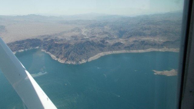 Monday, May 19, 2014 - Bonneville Transit Center (BTC) Bay 11, waiting for #106 northbound Bus BTC Bay 11 Time Schedule to Fiesta Stop, Las Vegas North Airport Inside the northbound #106 Rancho Blvd. Bus Just taken off VGT Airport Runway 7, climbing to 5500 ft., just north of Nellis Airforce Base Getting closer and better view of Las Vegas Motor Speedway Still climbing at VY 77, Heading 080, 4750 feet @ 500 fpm to level off @ 5500 Follow the red line for the approximate tour route in the Class B Airspace CFI William Van Steenis handling the radio communication with Nellis Departure Control. Probably the best picture of Las Vegas Motor Speedway for you NASCAR fans. At 5500 feet arching the course southeast bound Pointing the towards the Lower Lake Mead Marina Near the location of the originally planned Hoover Dam Site crossing Another view of the Lake Mead area Making our way to the Hoover Dam Over Lake Mead, getting closer to the Hoover Dam The new arched bridge over Colorado River New Bridge - Nevada to Arizona Back To Vegas Last Back To Vegas Itinerary Menu   Next To Vegas 2 |