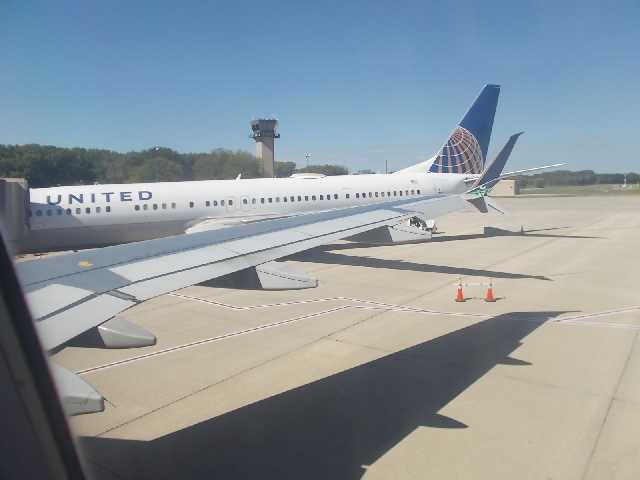 Thursday, September 28, 2017 - MSN Gate 3 - Looking out the window of the Frontier Airbus A320, Flight #1993 from Seat 23 F northward with a view of the Control Tower. This is the 2nd time I flew Frontier. My last Vegas trip was a direct Milwaukee to Vegas flight. Frontier began the direct Las Vegas flights from Madison at the end of last August.